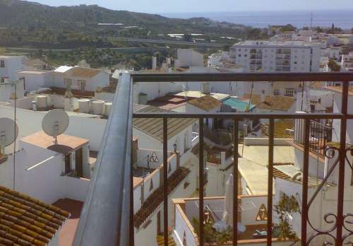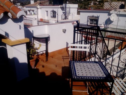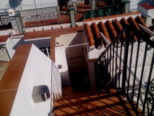 Trappen ned fra øverste tagterrasse med kig til brusekabinen på taget