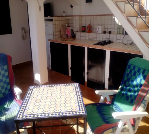 Nederste tagterrasse med udekøkken og opvaske- og vaskemaskine,